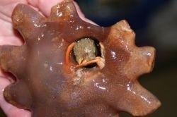 Natomiast do flagowych znalezisk tej wyprawy należy między innymi ogromna, bo aż dwumetrowa gąbka, a także duże morskie ukwiały, całe upstrzone purpurowymi cętkami. Jednak organizmem, który najbardziej zadziwił naukowców jest mięsożerna żachwa. Żachwy to jedna z trzech gromad osłonic, licznie reprezentowanych we wszystkich chyba morzach świata. Nieduże zwierzęta, w stadium dorosłym przypominające sakwę z dwoma otworami – większym wpustowym i mniejszym wypustowym. Za to w stadium larwalnym… w stadium larwalnym żachwy mają zarówno strunę nerwową, jak i cewkę grzbietową. Takie nasze dalekie kuzynki. Tyle że po przeobrażeniu w osiadłą postać dorosłą ten swój układ nerwowy… zjadają! A „nieduża” żachwa znaleziona przez ekspedycję ma aż pół metra długości. I, jak pisze Adam Subhas, przypomina podwodną muchołówkę (to ta fascynująca owadożerna roślina z rodziny rosiczkowatych), ale dużo dużo większą.
