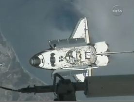 Manewr połączenia zakończył się o godzinie 16.27 czasu polskiego w trakcie lotu na wysokości 350 kilometrów nad Oceanem Spokojnym. Przedtem z pokładu ISS wykonano szczegółowe zdjęcia powoli obracającego się wahadłowca, co ma umożliwić wykrycie ewentualnych uszkodzeń jego powierzchni, powstałych w trakcie startu. Służąca do takich oględzin zdalnie sterowana kamera promu kosmicznego okazała się niesprawna.